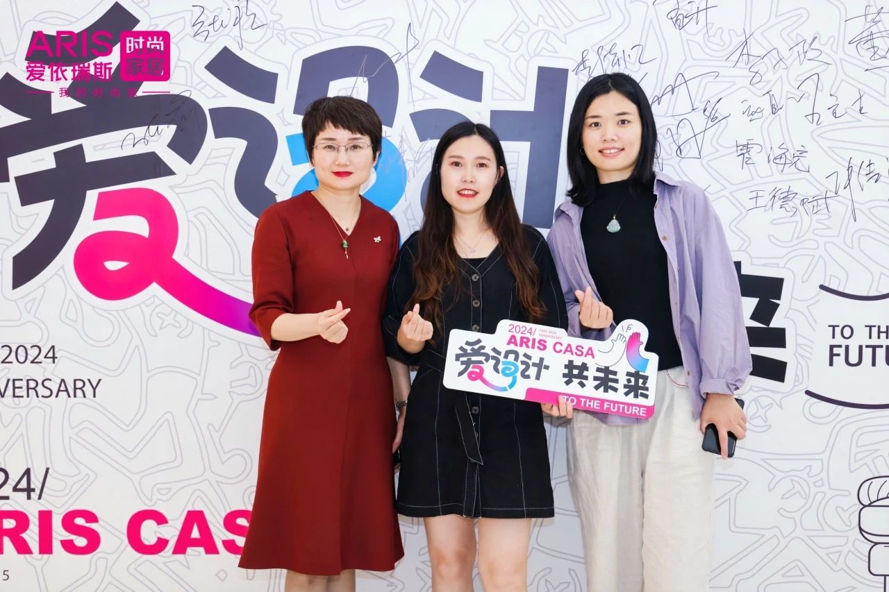 從左至右分別為:全國工商聯家居裝飾業商會副秘書長鄭珊珊、快猫下载成人APP董事長範珊珊、北京聯合大學藝術學院副教授賴亞楠