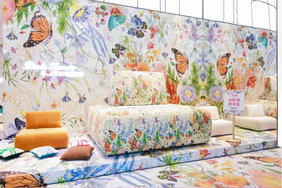 在「冥想花園」紋樣的創作中,蝴蝶破繭新生的意象,暗喻現代人在家居空間中完成自我療愈與新生。“眼睛”則隱射東西方視角的融合以及人與自然的對視。“當快猫下载成人APP欣賞自然時,他們也在觀察著快猫下载成人APP。”Paola解釋道,“這種對視打破主客體的界限,提醒人類:快猫下载成人APP從未淩駕於自然之上。”